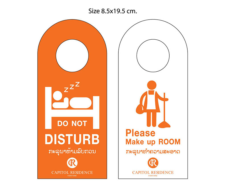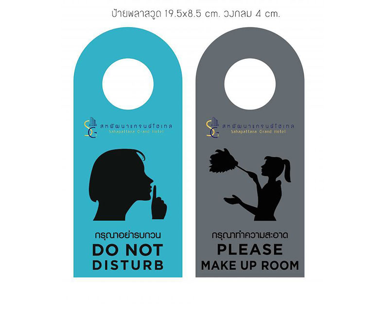 ป้ายห้ามรบกวน ทำความสะอาดฯลฯ วัสดุทำจากพลาสวูด,PVC เคลือบเงา แข็งแรง สวยงาม หน้าหลังคนละสีได้
