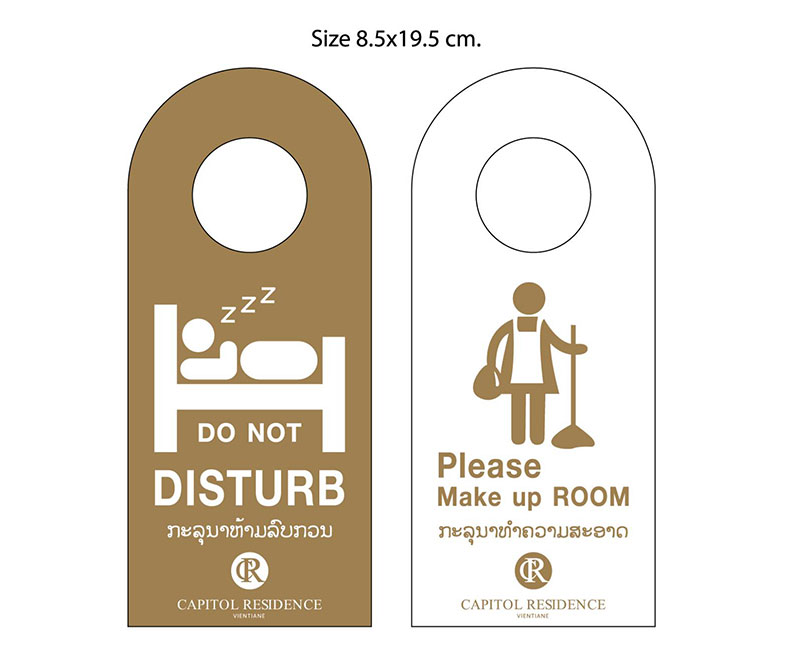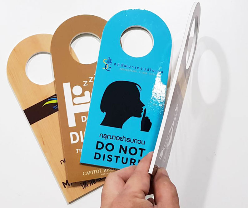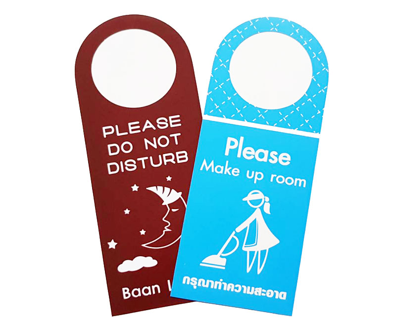 ป้ายห้ามรบกวน ทำความสะอาดฯลฯ วัสดุทำจากพลาสวูด,PVC เคลือบเงา แข็งแรง สวยงาม หน้าหลังคนละสีได้